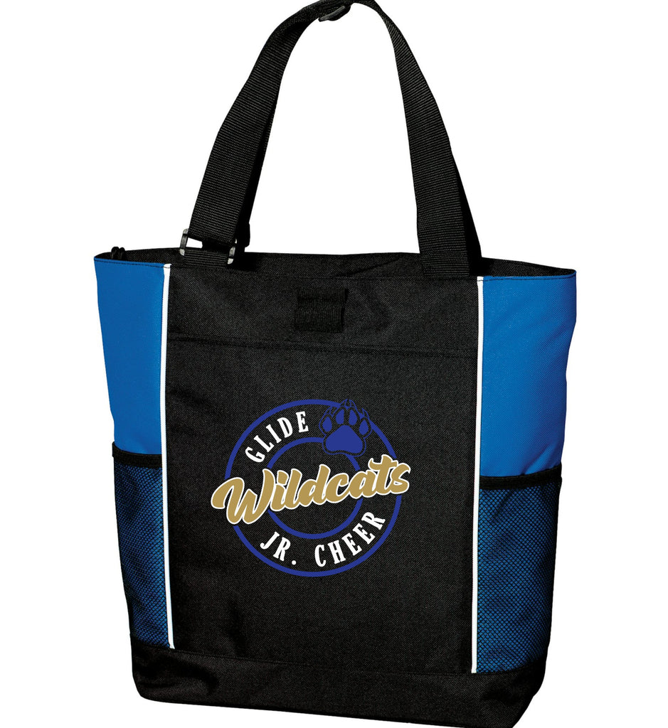 This tote has a secure zippered top and adjustable webbing handles for easy carrying. Made from a 600 denier polyester canvas it has a large front pocket and adjustable web handles, Pen holder loops and Two side mesh pockets.
